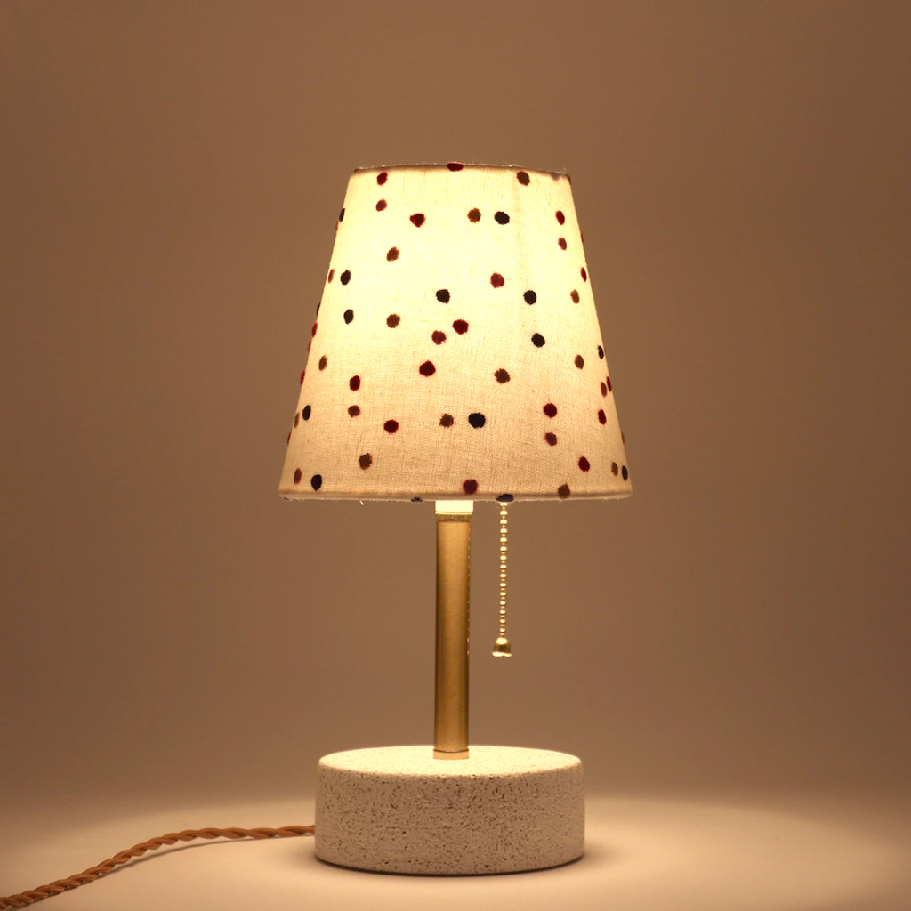 Agora nossa Mini Lampe Cabaret Confetti - bordado a mão - vem com um base nova de metal, linda, com pintura eletrostática na cor branca ! Tem o tamanho perfeito (15cm de diâmetro e 30cm de altura) para colocar em uma estante, na mesa de cabeceira, em uma mesa de canto... na verdade, onde você quiser! O tecido exclusivo, com bordado a mão lindo e delicado, da Mini Lampe Confetti e o charme do soquete com acionamento por correntinha fazem você se apaixonar de primeira. Sua lâmpada(filamento de Led bivolt), quente e aconchegante, nós carinhosamente chamamos de "luz de namorar".